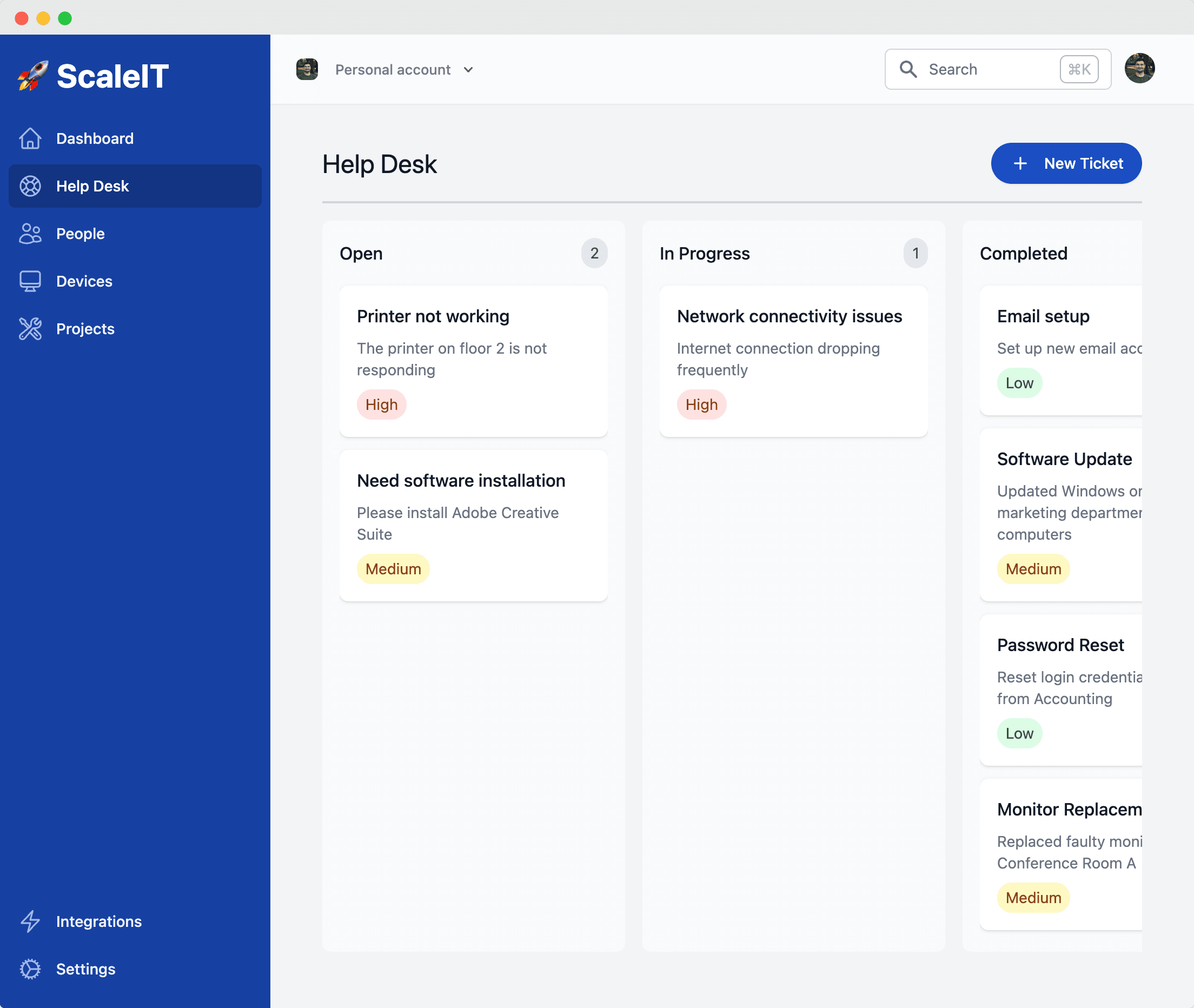Provide world-class IT support with our integrated help desk. Track tickets, automate common requests, and resolve issues quickly with our knowledge base.